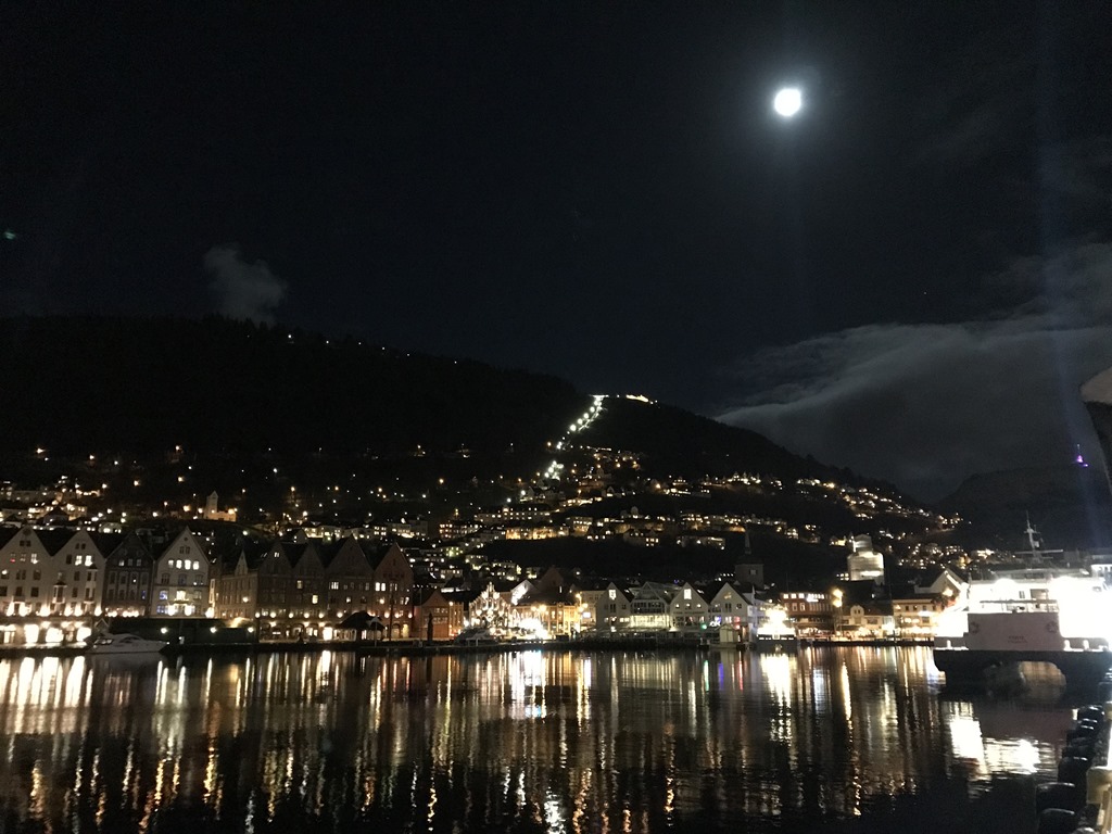 20:30 Förtöjda på Tollbodkaien i Bergen och inväntar morgondagen. Vi får ju inte lossa mellan 19-07 här inne heller. Så nu tar vi kvällen och jag går en runda innan jag ska sova. Är en riktigt fin kväll.
