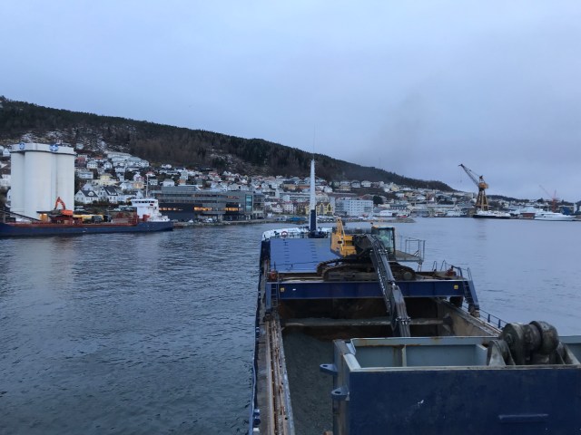 08:40 Förtöjda på Dokkeskjærskaia. Strax efter så kommer pråmen Recto på utsidan.