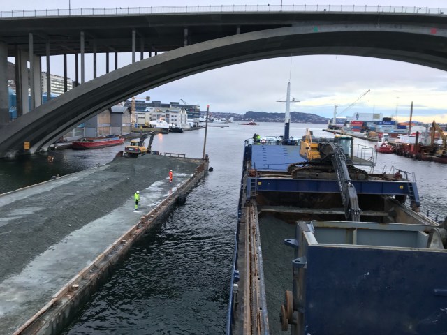 10:40 Förtöjda på Langesund innanför Pudefjordsbrua för lossning.