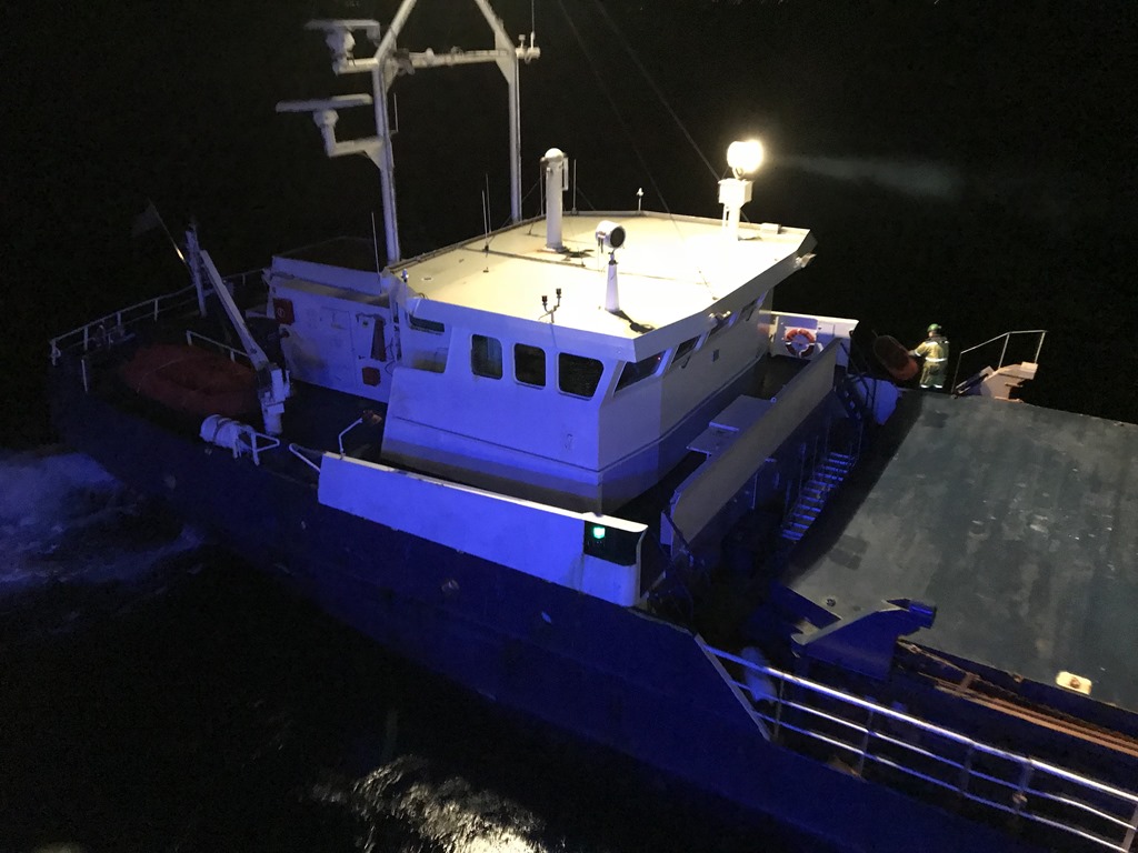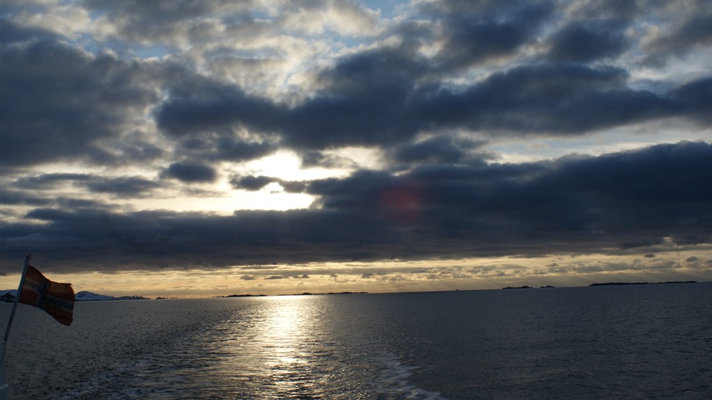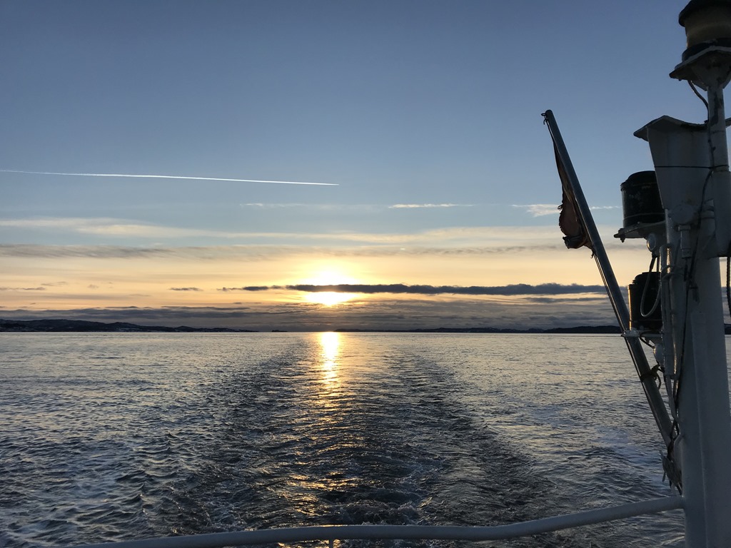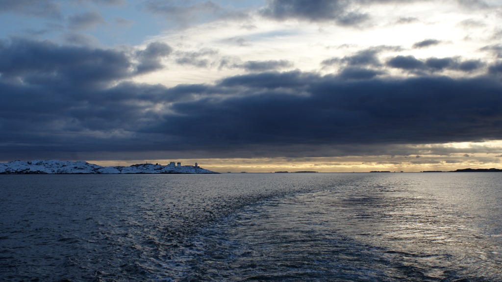 02:00 Kommer på vakt vid Lista och fortsätter norrut i mörkret. Stilla fint väder och vi gör bra fart.