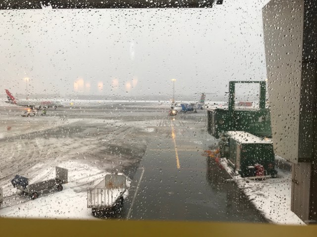17:55-18:40 Flyg till Oslo och där blir även nästa flyg försenat pga det dåliga vädret.