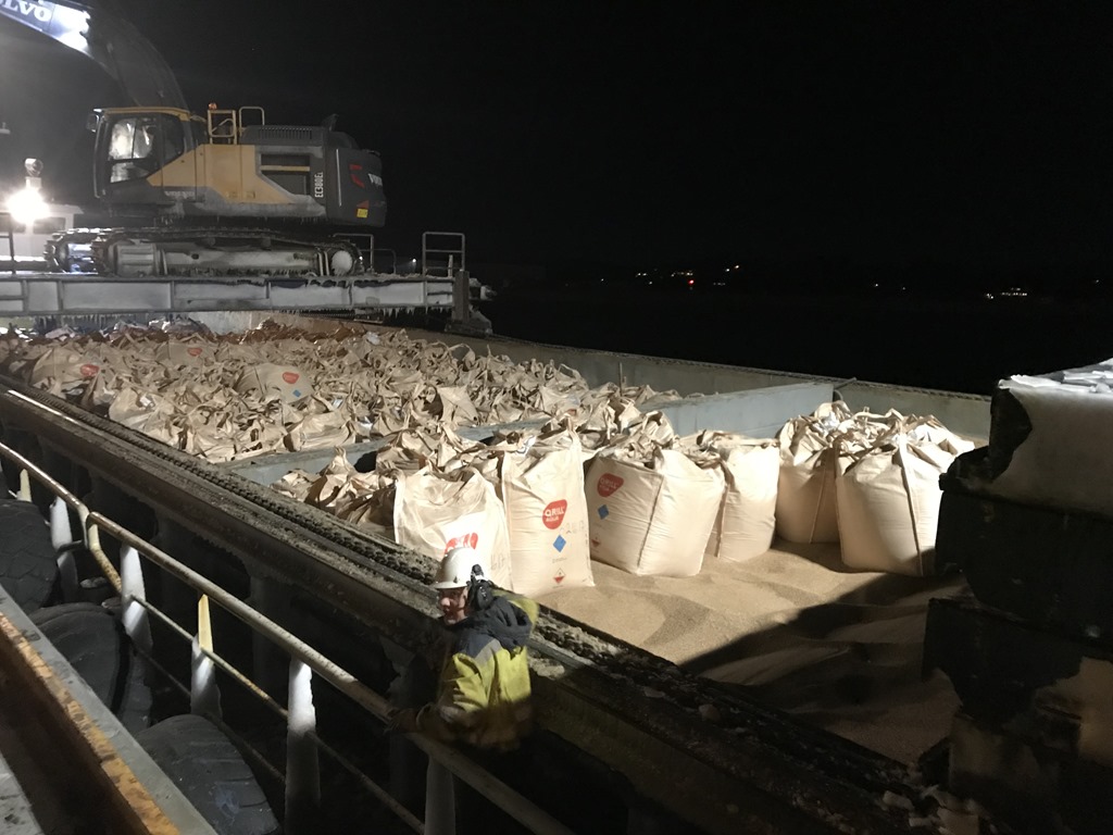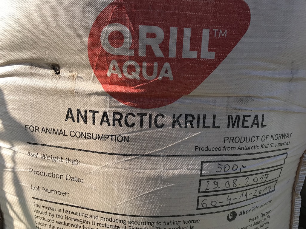Vi börjar med att lasta in så många bigbags med Krill vi får plats med i främre lastrummet.