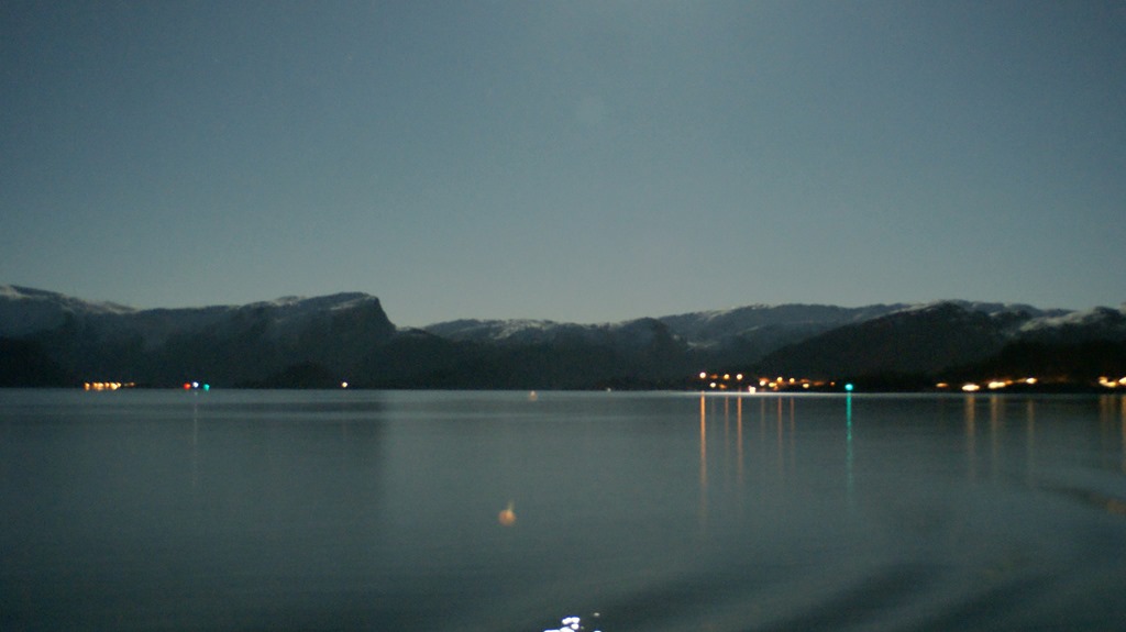 08:00 Kommer på vakt vid Börnestangen syd på Bergen. Går genom Vatlestraumen i strålande solsken och –9 grader.