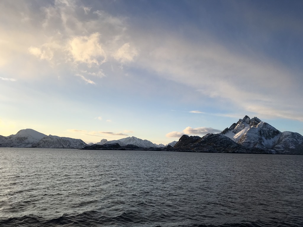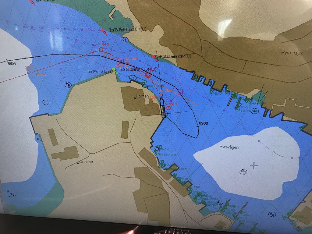 02:00 Går av vakten när vi kommit över Vestfjorden och närmar oss Gomsöystraumen.08:00 Kommer på vakt på utsidan Vesterålen. Fortsätter in mot Myre.![]()