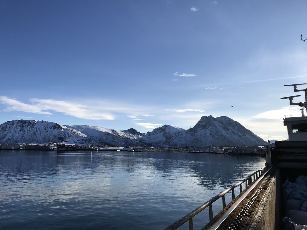 09:05 Förtöjda på Biomar i Myre i strålande solsken och –6 grader.