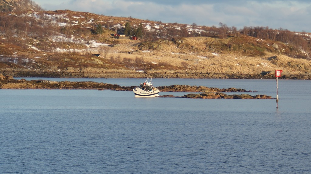 När vi närmar oss Myre så ser jag en båt som kört på grund så vi slackar av på farten.