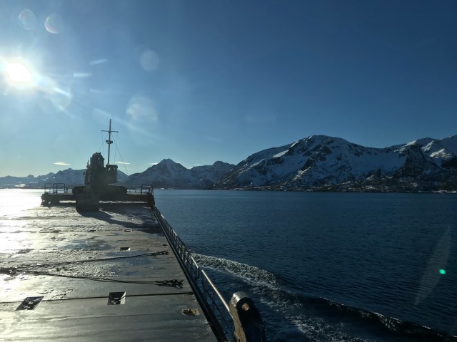 När vi går genom Gimsöystraumen så tar en viss Frode Adolfsen kort på oss.