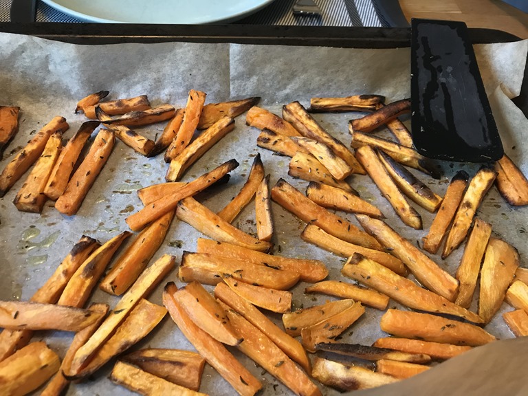 Till kvällen så gjorde jag spareribs och sötpotatis pommes.
