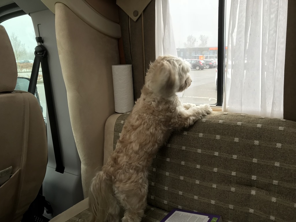 Därefter så körde vi mot Danmark igen. Vi stannade i Kolding och tankade och handlade lite mat inför kvällen Chili satt i fönstret och spanade.