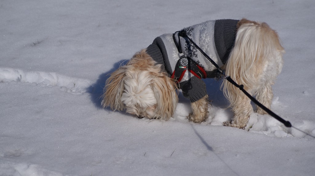 Var en riktigt solig fin dag när man vaknade. Hade ju tänkt att orientera idag men  pga all snö som kom häromdagen så står jag över. Istället så gick vi en runda med Chili och letade efter bra kontroller för en foto-orientering. Vi har haft det flera år innan och det är väldigt efterfrågat på turistbyrån. Så jag tog på mig att göra en ny för i år.