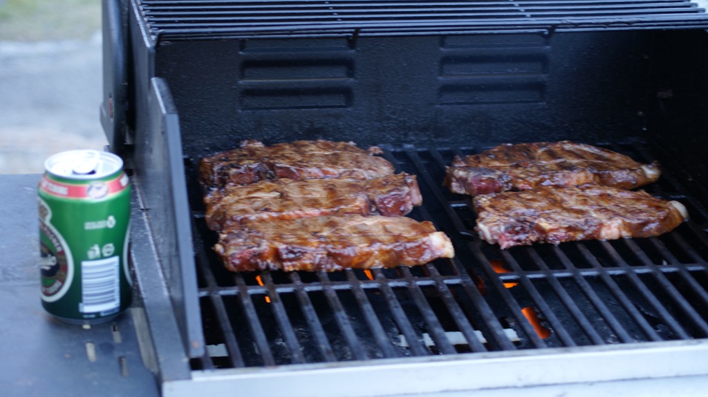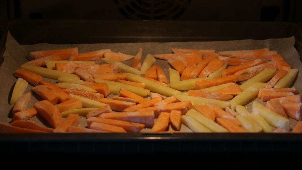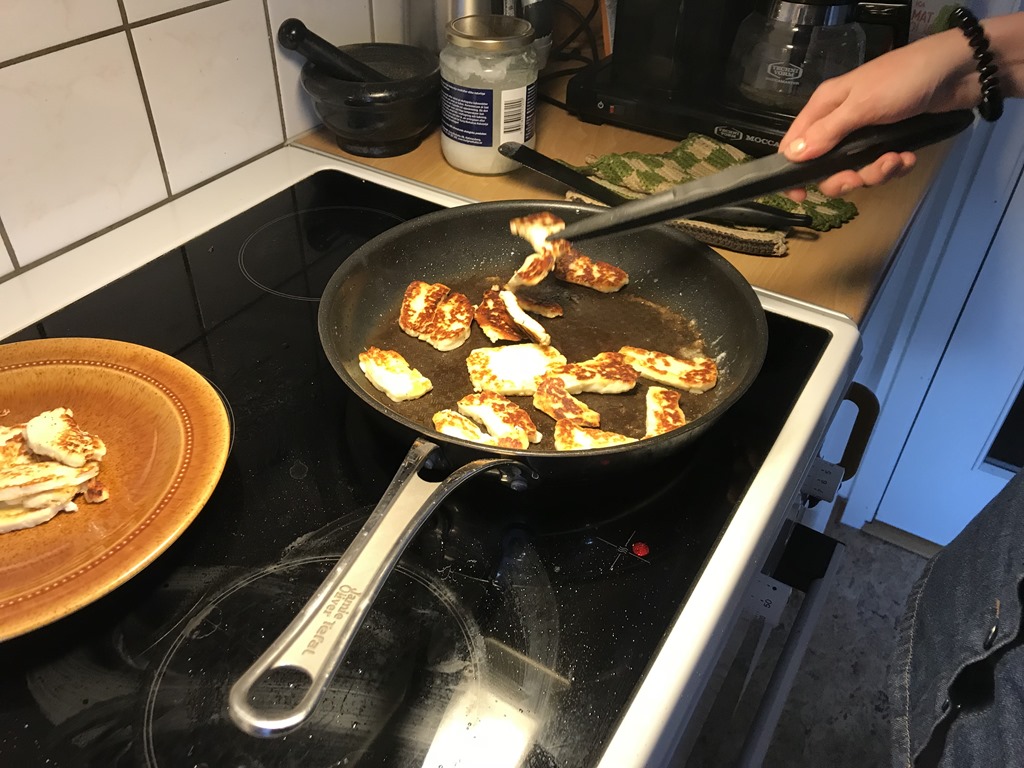 Till kvällen så var det dags att ha grillpremiär hemma. Gjorde sötpotatis i ugnen och grillade karreskivor medan Linnea stekte haloumi.