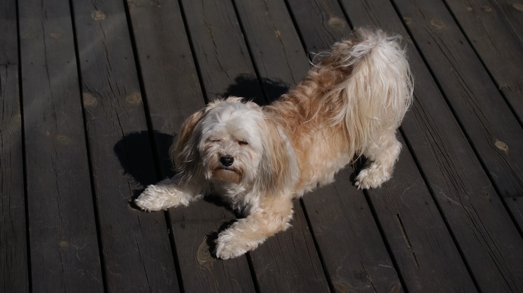 Vi åkte till Läjet idag för att äta Påskmiddag hos min mamma. Riktigt fint vårväder och Chili trivdes i trädgården.