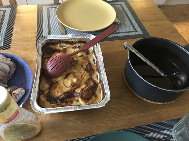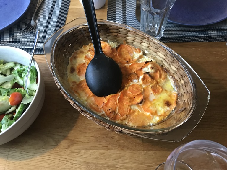 Till kvällen hade jag gjort Sötpotatisgratäng, vanlig potatisgratäng och Lammstek.