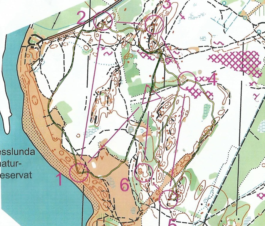 Även den andra slingan gick fint ända till den sista 6 kontrollen som jag tydligen missade totalt. Har väl tagit någon kontroll från bana 3 eller 4. Sedan tillbaka till varvningskontrollen så har jag även gjort bort mig fullständigt.
