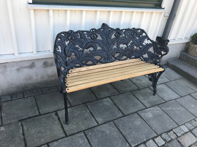 En riktigt fin vårdag så det var dags att ställa fram bänken som Britta restaurerat.