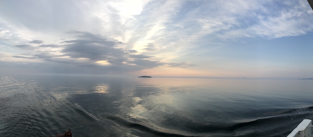 18:00 Vaknar och går upp på bryggan och ser när vi passerar Feistein.