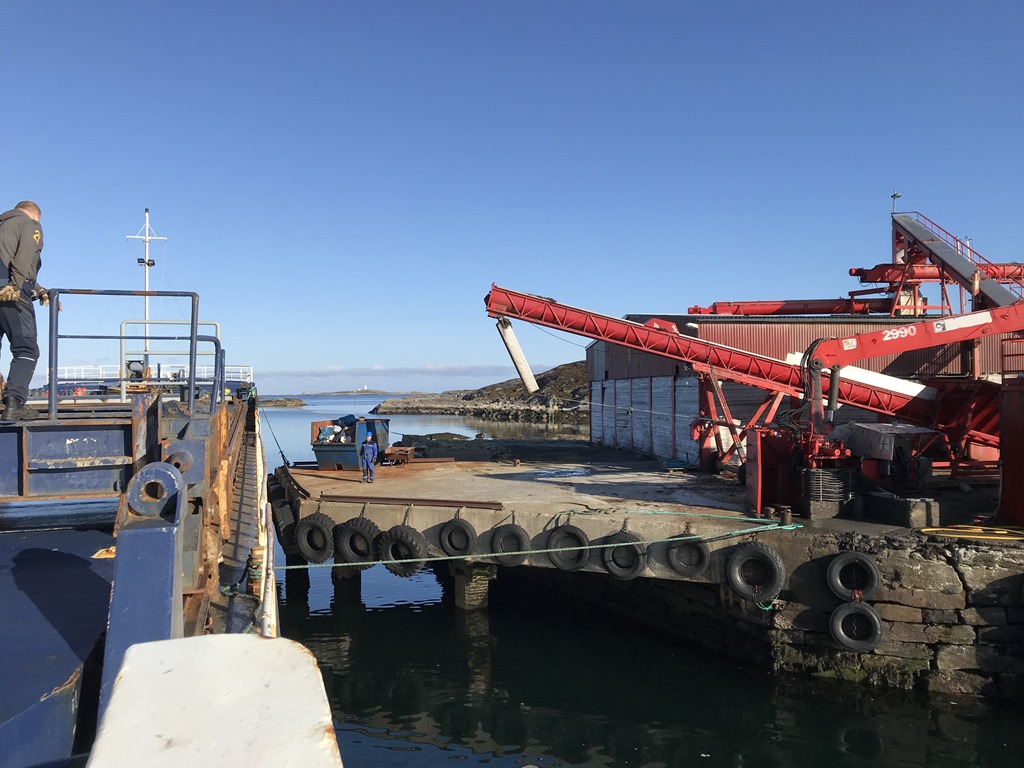 08:00 Kommer på vakt och Asbjörn har precis gått in i den lilla inseglingen till Vevang och förtöjt. Vi börjar strax därefter lasta tång och det är riktigt kanonväder idag.