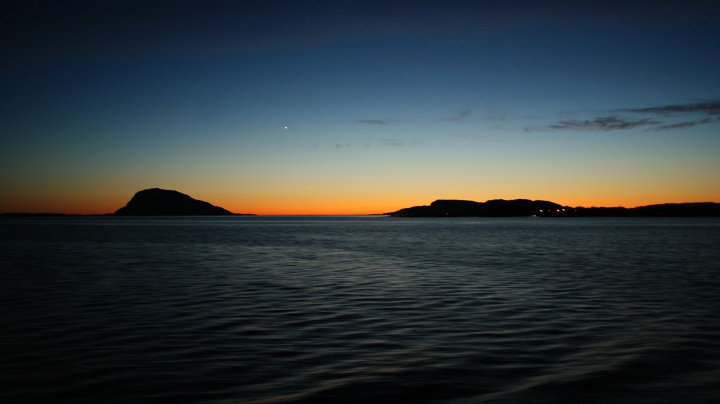 02:00 Går av vakten när vi passerat Tjeldberodden i Trondheimsleia.