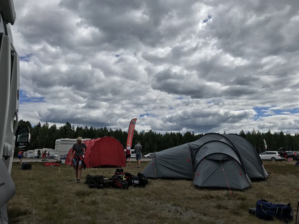 Väl framme på TC vid Emmaboda flygfält så började alla sätta upp sina tält utom jag och Anna som satte oss utanför husbilen med lite kaffe. ![]()