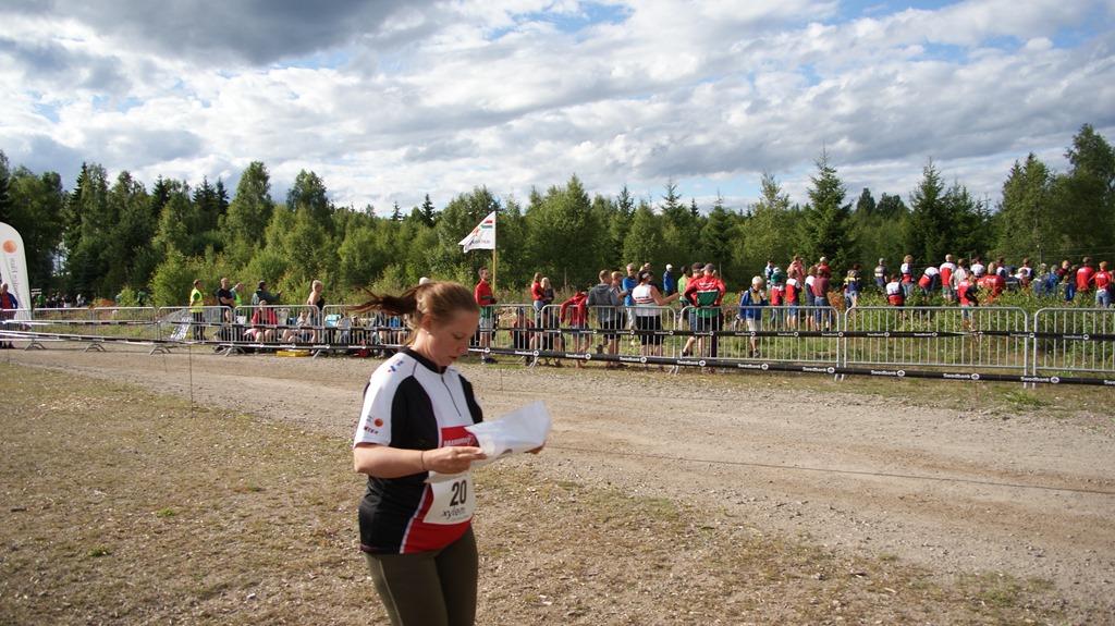 Anna och Gunilla står och väntar på Emma som tar alla kartorna vid växlingen på sträcka 14.