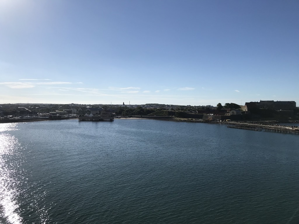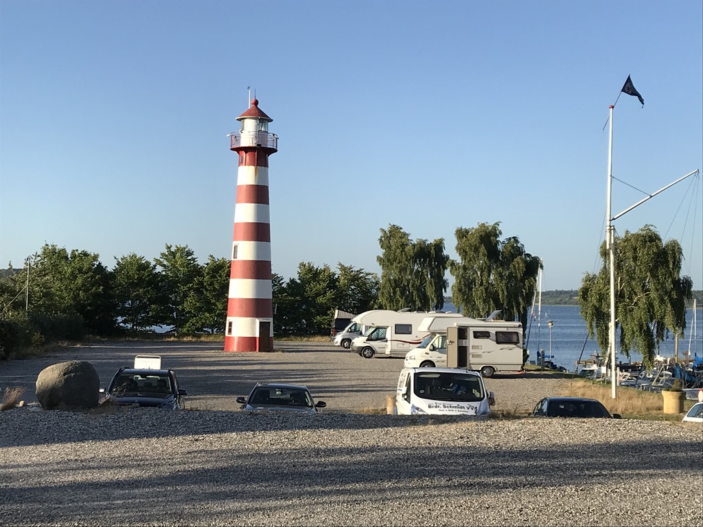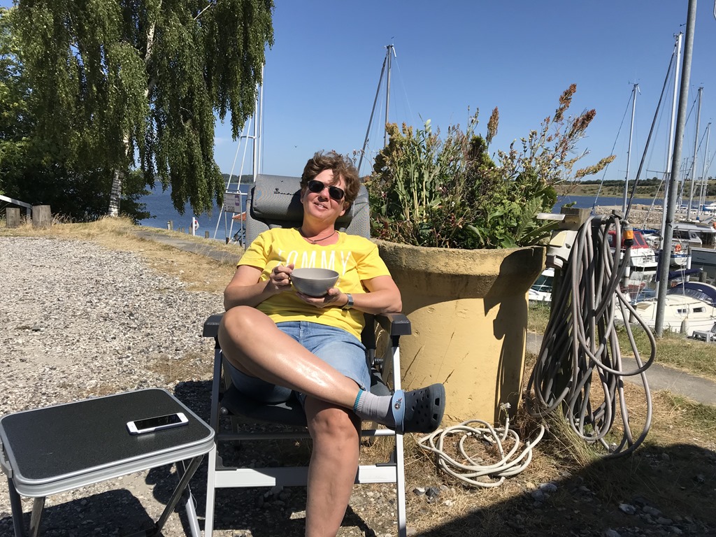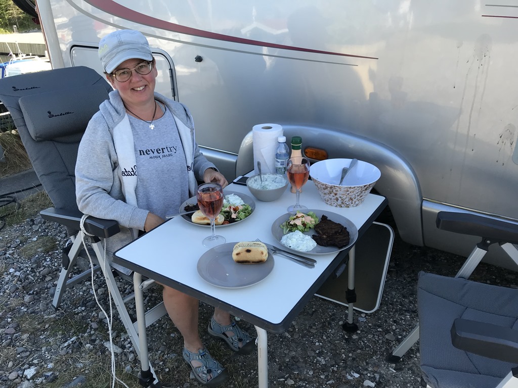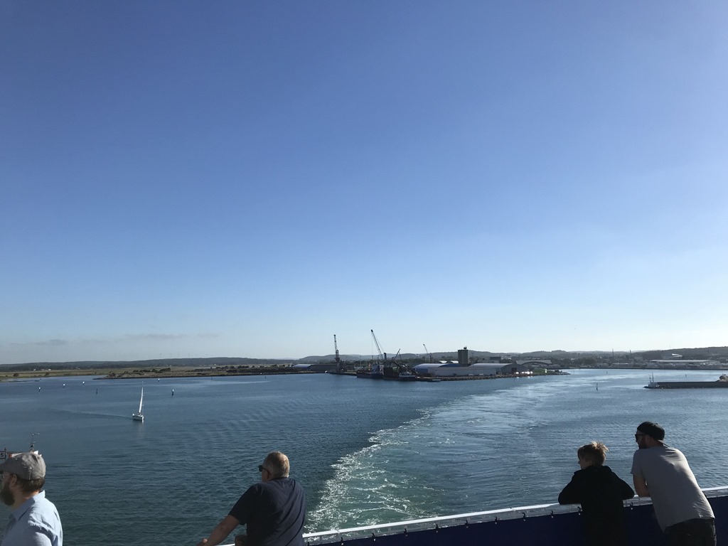 06:00 Vaknar och sätter på kaffet.06:20 Vi har packat in allt i husbilen och ger oss iväg mot Varberg.07:00 Framme vid Stena terminalen och checkar in. Chili får sig lite frukost och vi tar oss lite kaffe och varsin macka i väntan på att få köra på färjan.2018-07-03 07.22.352018-07-03 07.24.2008:05 Färjan avgår från Varberg och vi sitter ute på soldäck längst akter och njuter av utsikten.2018-07-03 07.49.492018-07-03 07.57.442018-07-03 08.03.522018-07-03 08.04.062018-07-03 08.04.352018-07-03 08.38.0612:20 Framme i Grenå och kan köra av färjan och sikta mot första ställplatsen. Får ju inte dröja för länge eftersom Sverige spelar klockan 16.Vi siktar först på Randers Lystbådehavn. Men väl framme där så finns det inga platser eftersom det står fullt med personbilar där. Ja vi tar sikte mot nästa ställe som ligger längs Mariagerfjorden. Vi kommer fram till Kongsdal Lystbådehavn och där står bara 1 husbil på den stora ställplatsen. Jag går för att betala och får även en omvisning av servicehuset av havnevakten. Det är en jättefin ställplats och småbåtshamn med fina toaletter, duschar, kök och tvättmaskiner. Så det är bara att plocka fram stolarna och sätta sig i solskenet med varsin kall dricka.2018-07-03 14.53.452018-07-03 15.47.46När sedan matchen börjar så sätter vi oss inne och streamar matchen  på tv’n. Blir ju en seger för Sverige och denna semestern börjar helt perfekt.Till kvällen så inviger vi den nya grillen och äter entrecoter från Thuressons gårdsbutik med tzatziki och sallad.2018-07-03 18.52.392018-07-03 19.00.182018-07-03 20.18.31Nu är vi totalt 4 husbilar och jag sitter utanför med ett glas rödvin i 24 graders värme och tittar ut över Mariager fjorden.Här gick man in ett par gånger i vintras när isen låg tät i fjorden. Tror det blir ett dopp innan avfärd i morgon. Vi har bestämt oss för att sikta på Nibe vid Limfjorden så får vi se om där finns plats ledig.