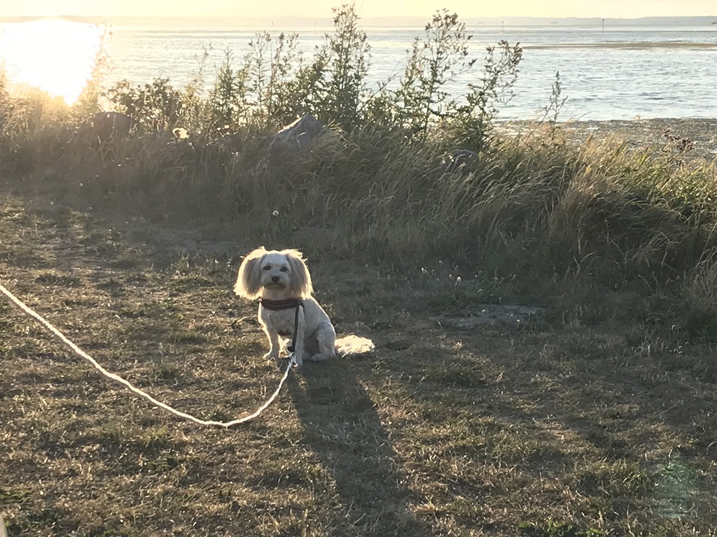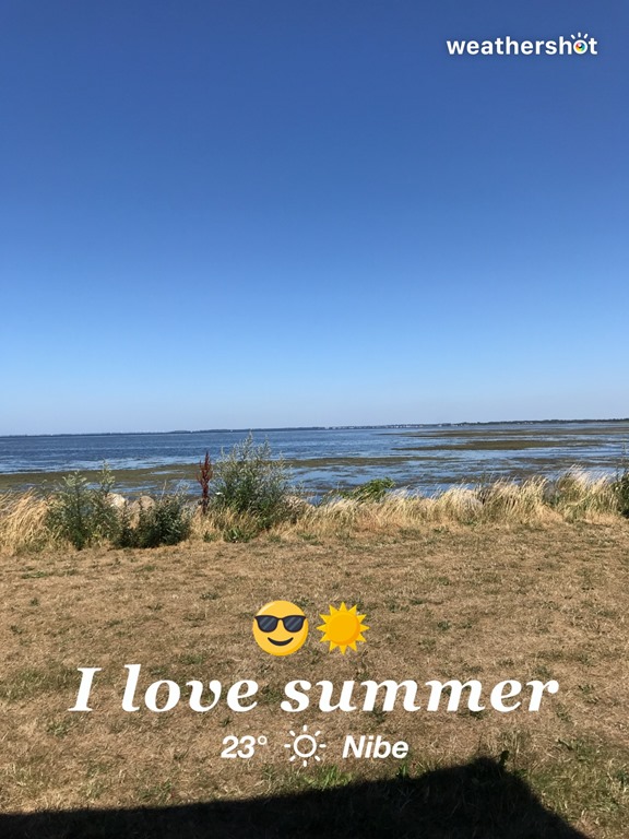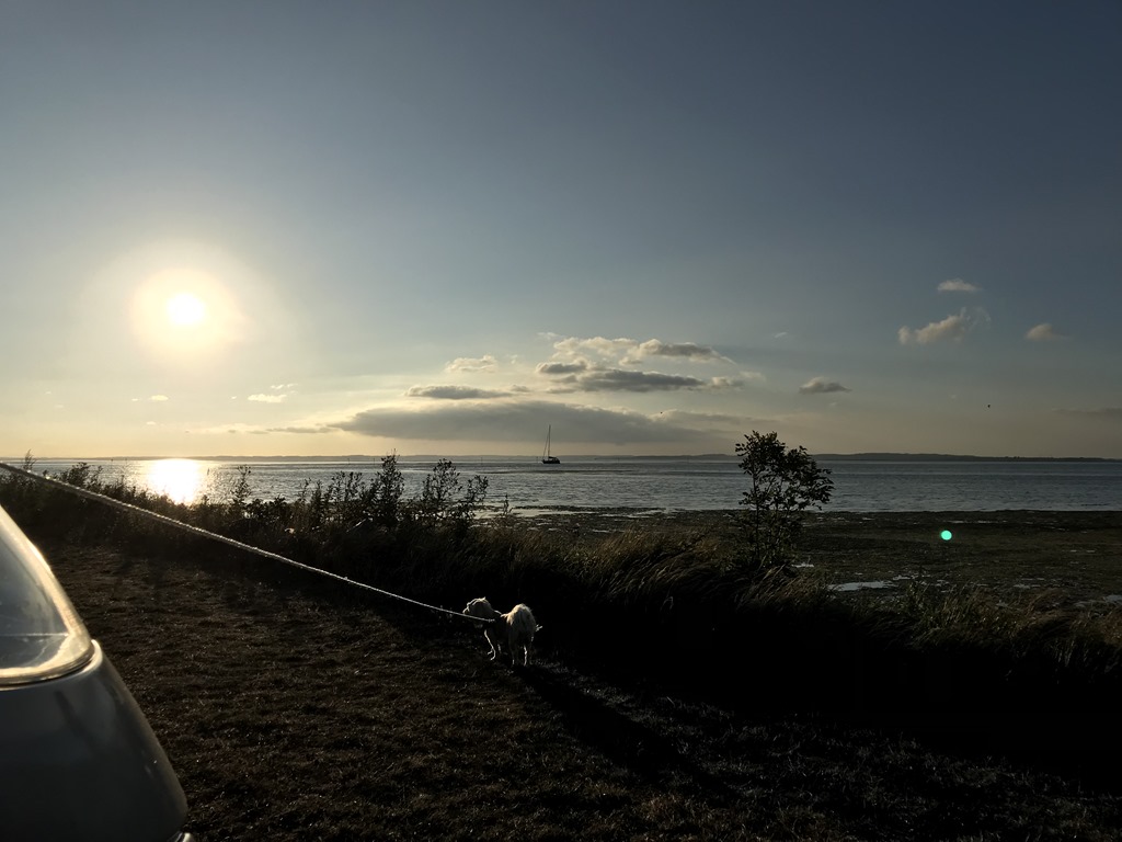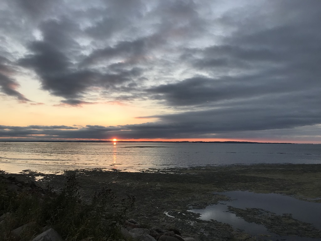 Efter maten så sätter vi oss utanför husbilen och tittar på solnedgången över Limfjorden.