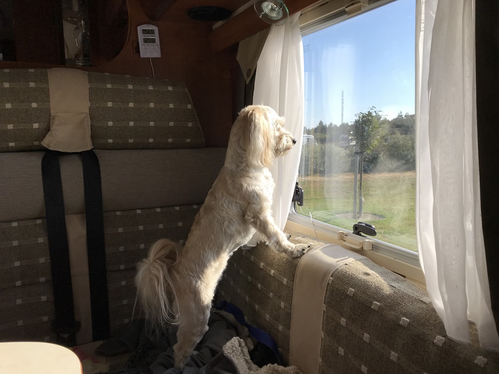 Vaknade till en strålande solig morgon och medan jag koka kaffe så stod Chili och spanade.