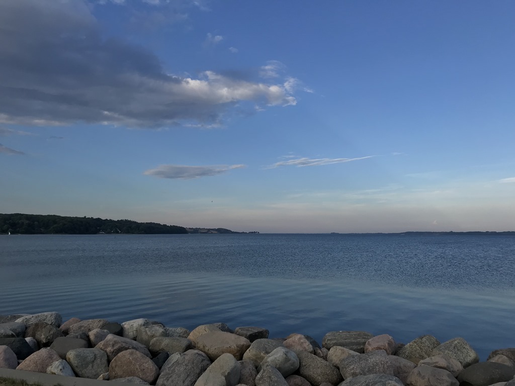Vi gick en runda på hamnen och bort till stranden där jag badade. Kanske inte det varmaste i år men väldigt skönt att svalka sig efter en dag i husbilen.