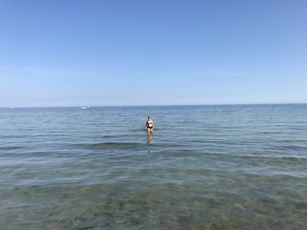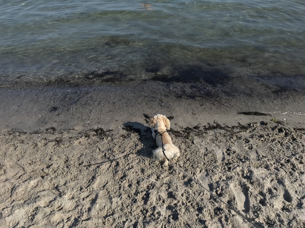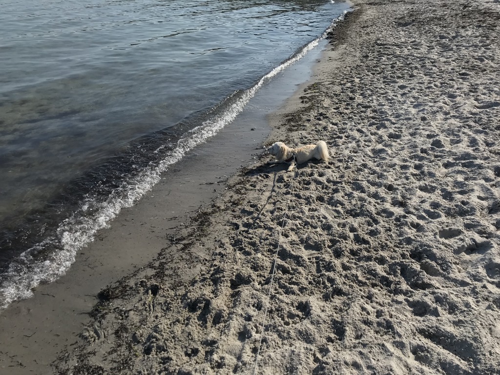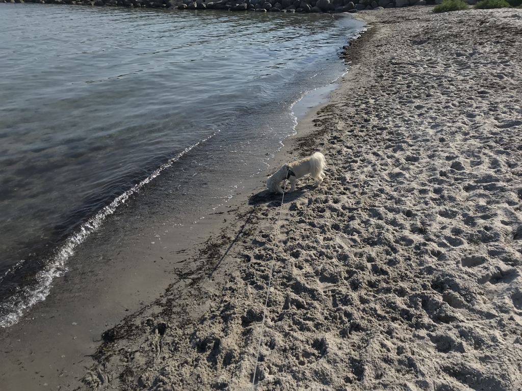 Lite senare så tog vi ytterligare ett dopp och då var Chili med eftersom syd änden på stranden är för hundar med. Men hon gillar ju inte vatten utan sprang bara omkring i vattenbrynet som en galning.