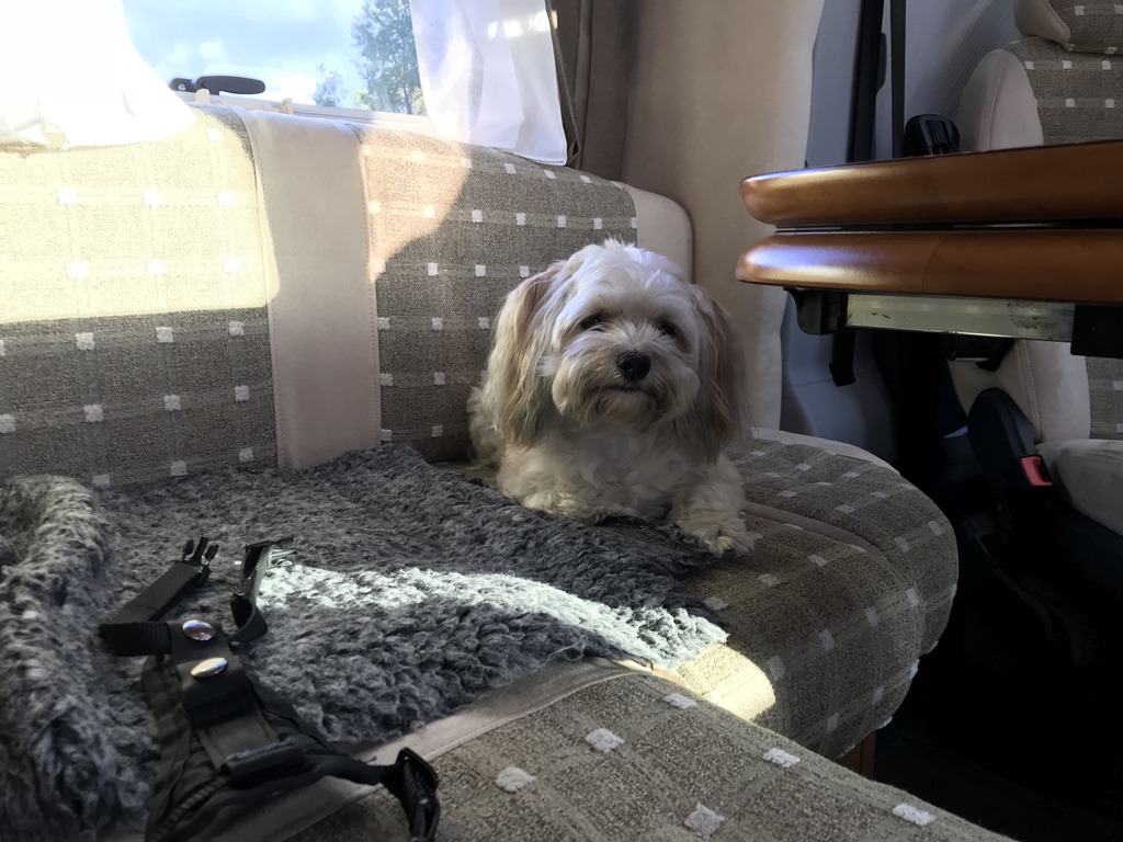 När jag vaknade på Lördag morgon så cyklade jag ut för att hämta husbilen. Sedan hem och packa och köra ner till Halmstad där jag skulle hämta Chili som Elin passat.