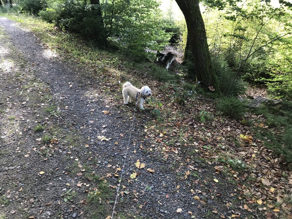 Jag fick lite kaffe innan jag och Chili fortsatte norrut igen. Jag valde att köra till Åkulla och vi gick en runda i skogen när vi kom fram.