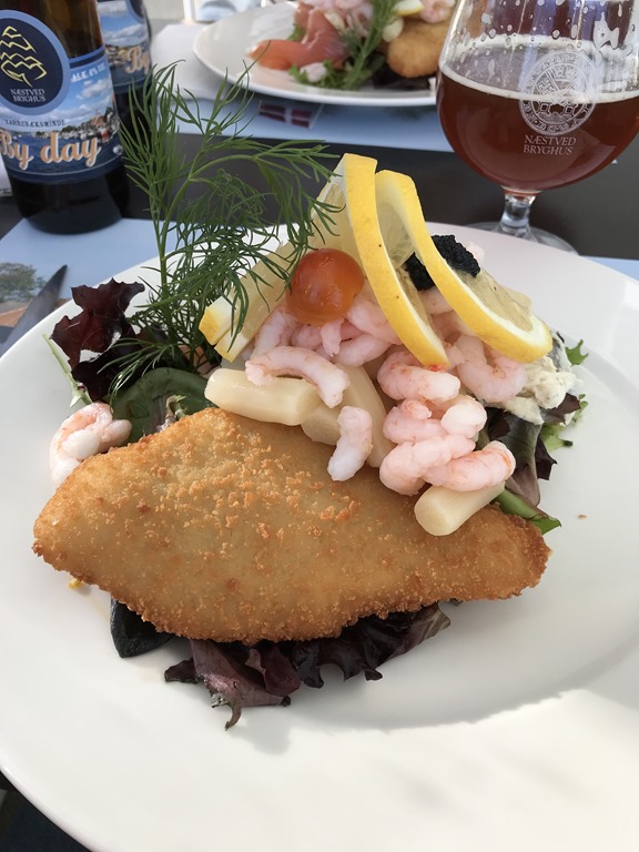 Väl på Danska sidan så siktade vi ner mot Naestved och Karrebaeksminde. Hittade en riktigt fin liten ställplats vid småbåtshamnen. Där fanns ingen havnefoged just nu så jag ordnade lite lunch så länge.