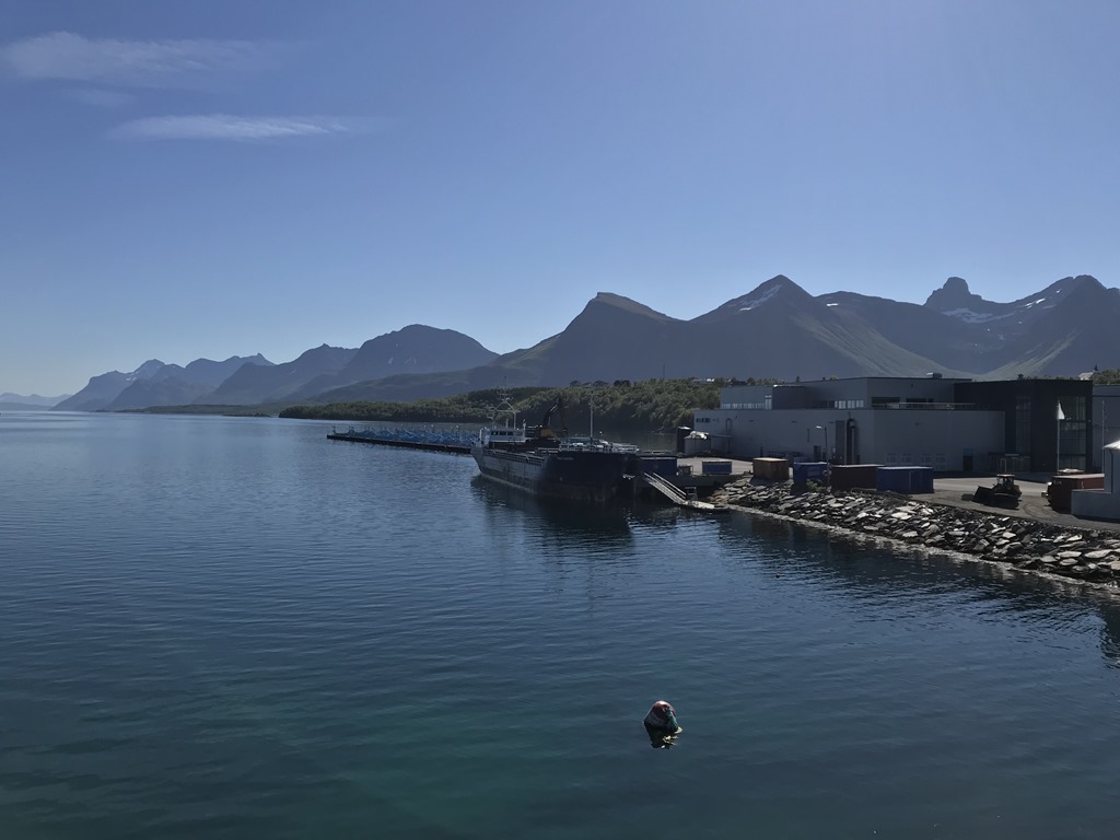 08:00 Kommer på vakt och sätter mig med lite kaffe och njuter av utsikten. Vi har ännu inte fått besked om vart vi skall efteråt. Men 1 timma senare får jag besked att vi skall gå mot Ballangen efter utlossning.