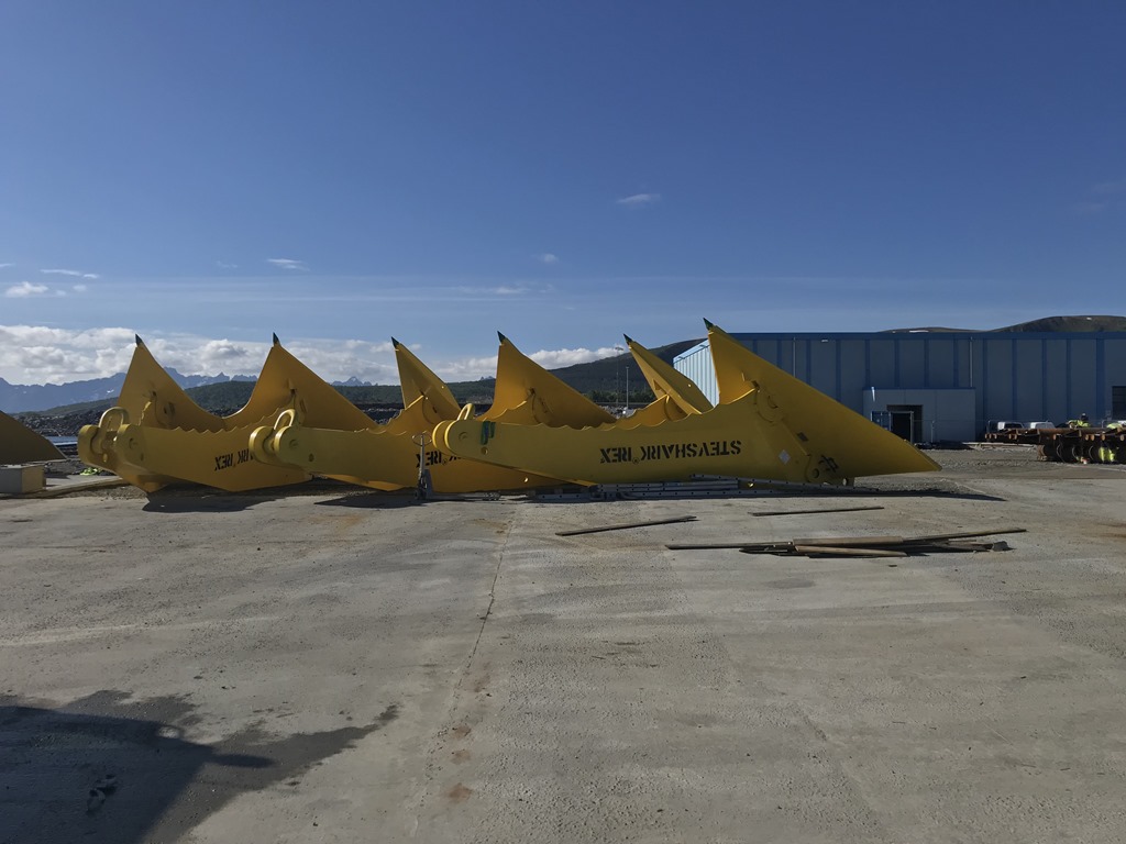 Här är ankarna som skall hålla fast världens största fiskodling som skall ligga lång ute till havs här utanför. De kommer gräva ner sig 7 meter i botten för att hålla fast den 395 meter långa och 60 meter breda odlingen. Nordlaks havfarm skall den heta och vara färdig byggd våren 2020.