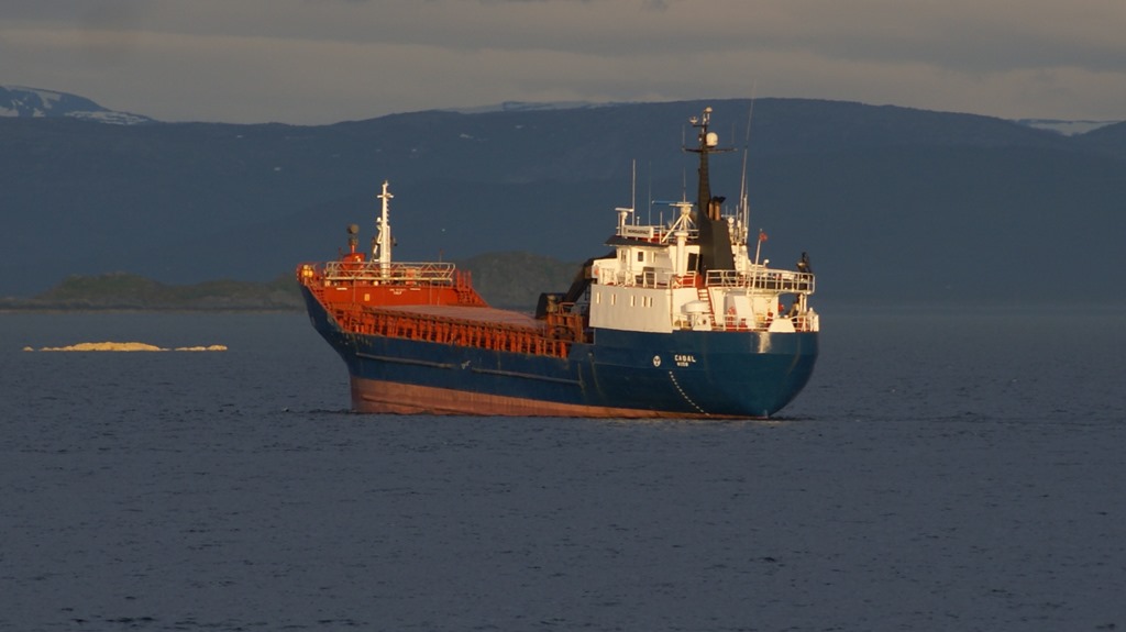 21:15 Förtöjda på Arnfinnsletta och skall lasta. Här kommer ytterligare en båt som skall lasta efter oss. Men han får allt vänta någon timma till.![]()