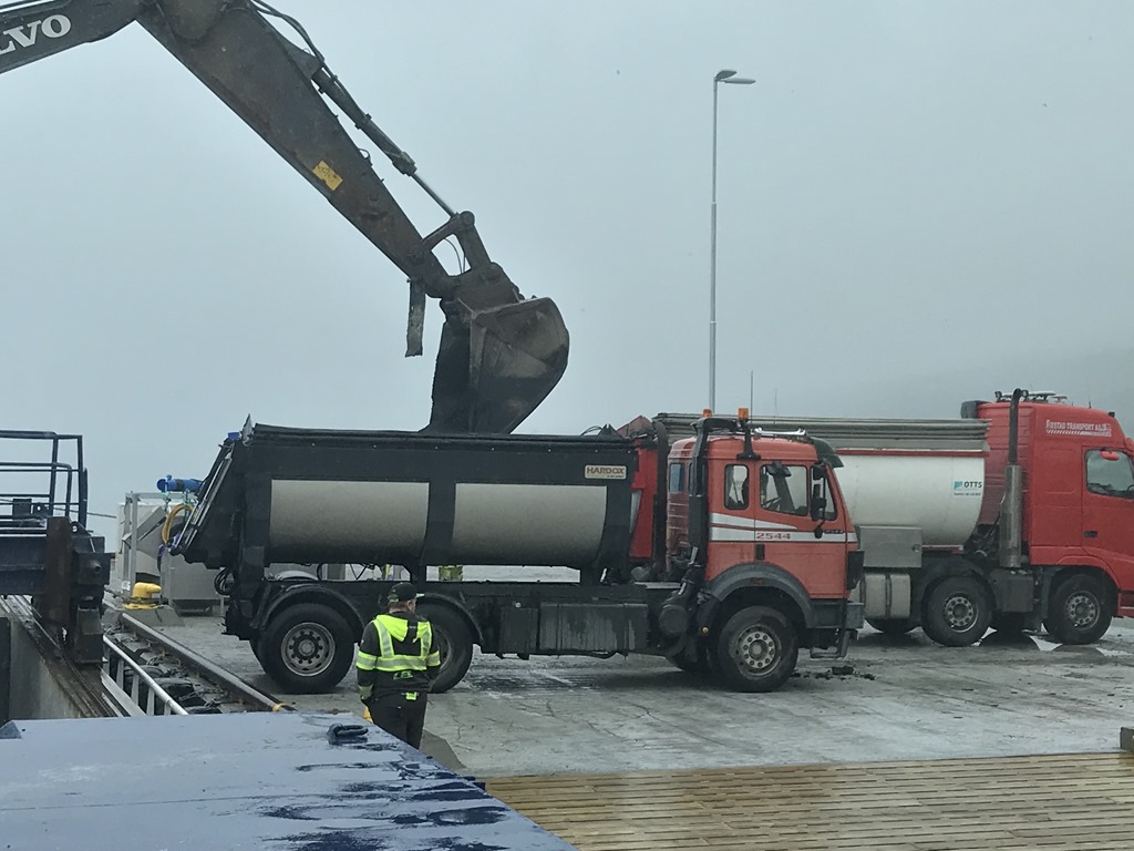 Jag hade räknat med ytterligare en last hit till Nord-Lenangen med asfalt. Men tydligen så tar en annan båt den lasten och vi skall gå ner till Hjellnes och lasta när vi är klara.