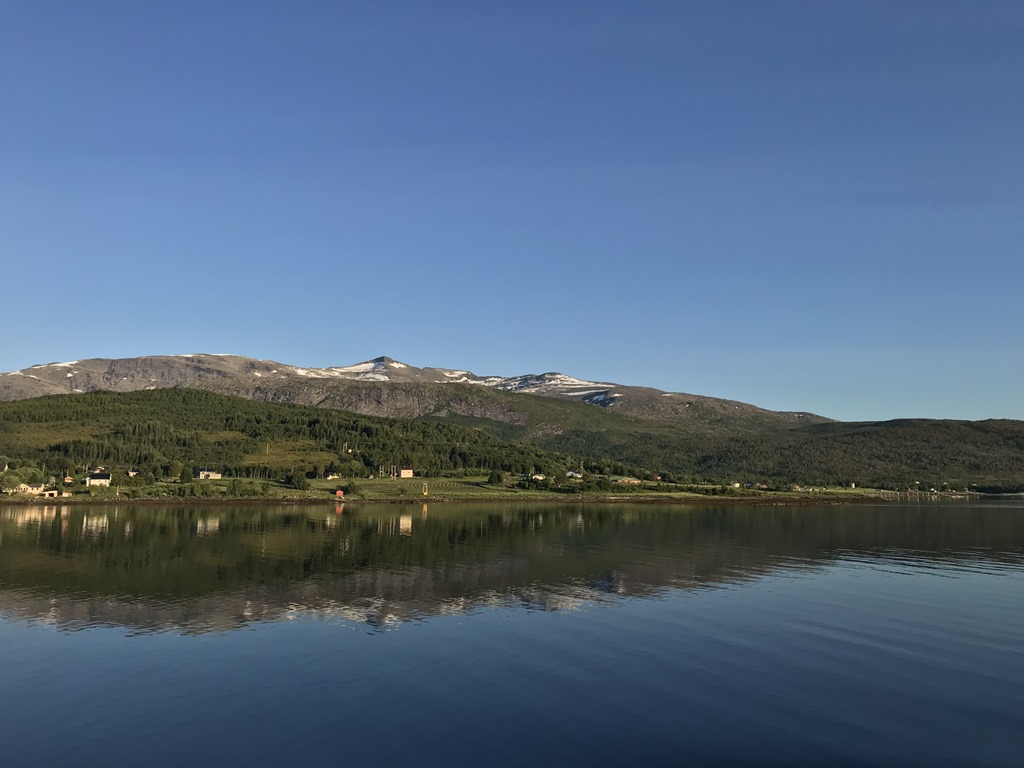 Fortsätter ner genom Tjeldsundet i riktigt fint väder och temperaturen är fortfarande ca 17 grader.