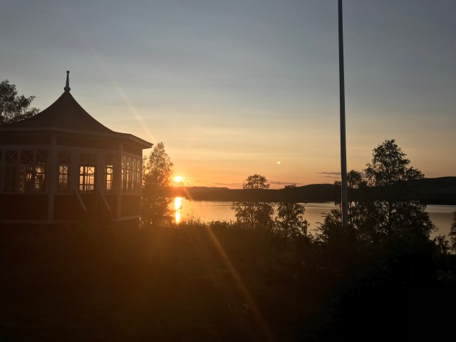 Vi sätter oss sedan inne och pratar resten av kvällen och njuter av den fina utsikten.