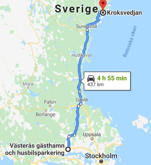 Vi gör ett kort stopp utanför Söderhamn för att tanka. Sedan snabbt vidare och det har klarnat upp och solen kommer fram.