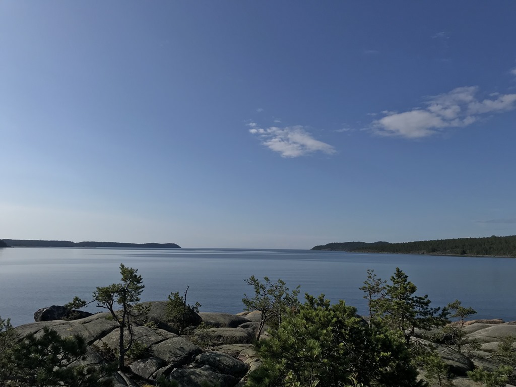 Strax efter så vaknade Gunnel och Arne och jag fick kaffe inne i deras stuga. Jag och Arne gick sedan en runda ut till kusten där det var riktigt fin utsikt och Höga Kusten leden gick förbi här.