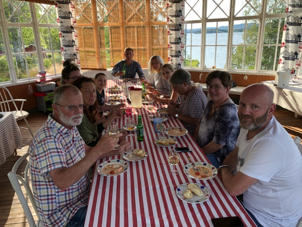 Till kvällen så bjöds vi på fisksoppa och till dessert rabarberpaj. Smile with tongue out