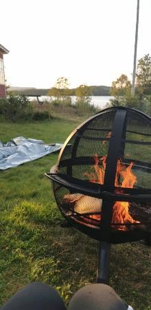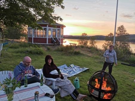 Vi avslutade kvällen med lite gott att dricka framför bålen och se när solen gick ner.