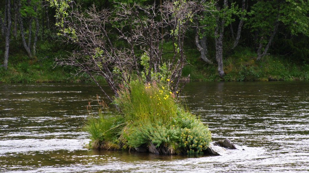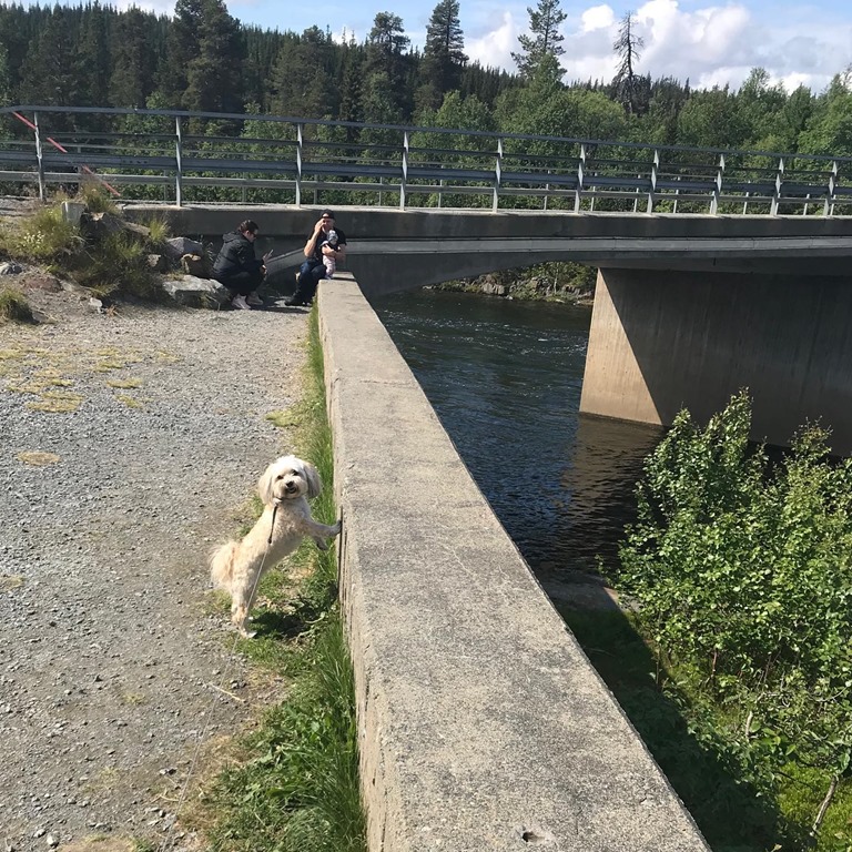 Vi fortsätter sedan västerut och efter ca 3 mil svänger vi av Vildmarksvägen och kör mot Fatmomakke. Där finns en lite ställplats intill älven som vi stannar vid. 100:- dygnet med el. Men toaletterna och duscharna är nog inget vi kommer använda så mycket.