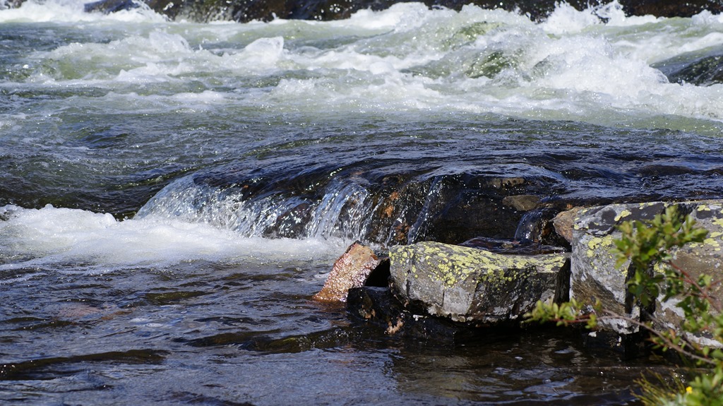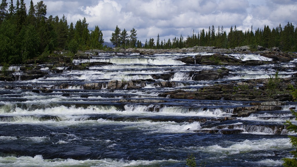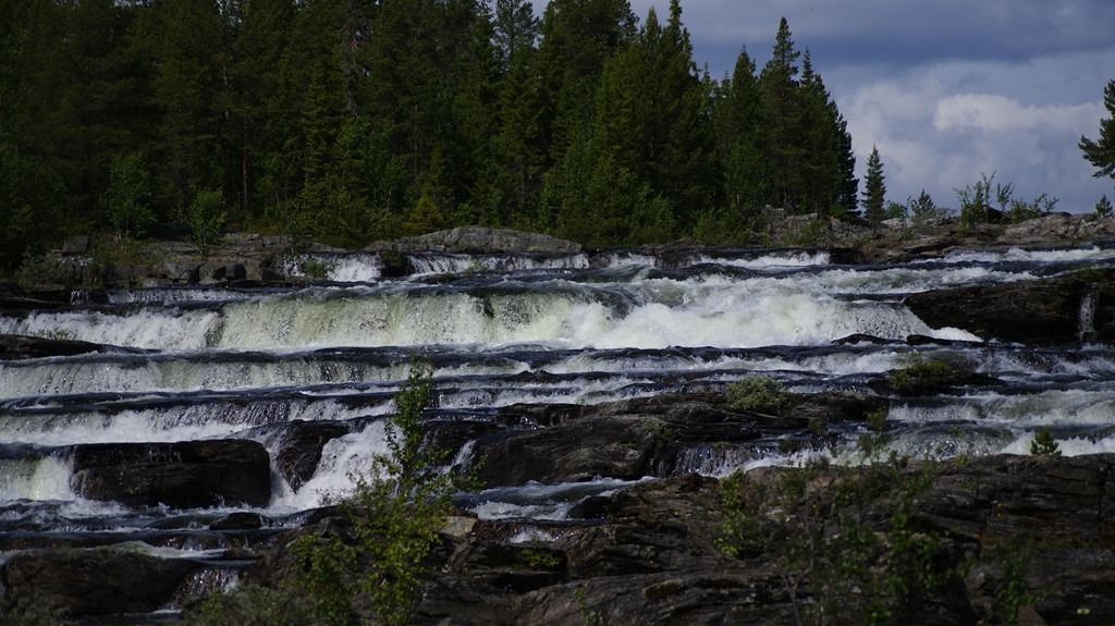 12:00 Stannar vid trappstegsforsen och jag fixar några äggmackor som vi tar med ner till forsen och äter. Solen skiner och det är riktigt skönt väder.