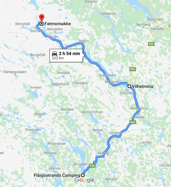 08:45 Åker från campingen och kör mot Vilhelmina.