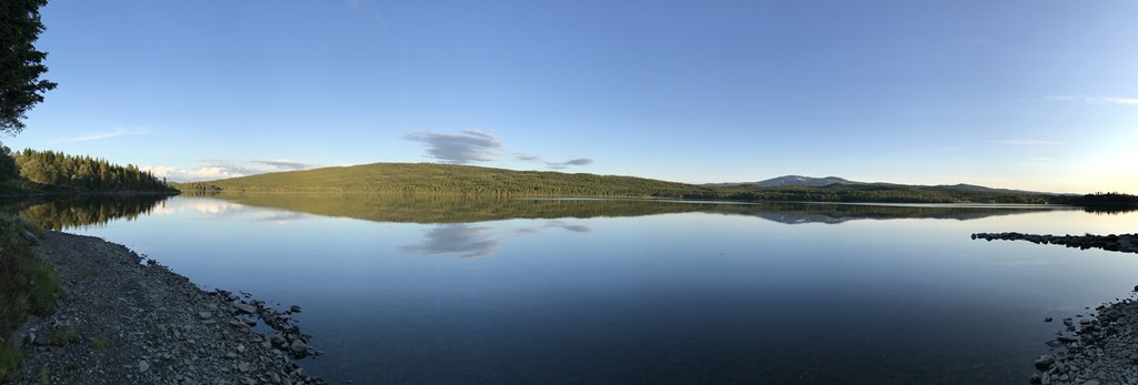 Egentligen hade vi tänkt att köra en kortare sträcka idag och stanna vid Jormvattnets Fiskecamp. Men eftersom det var så himla mycket mygg här uppe så fortsätter vi.