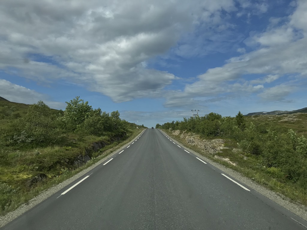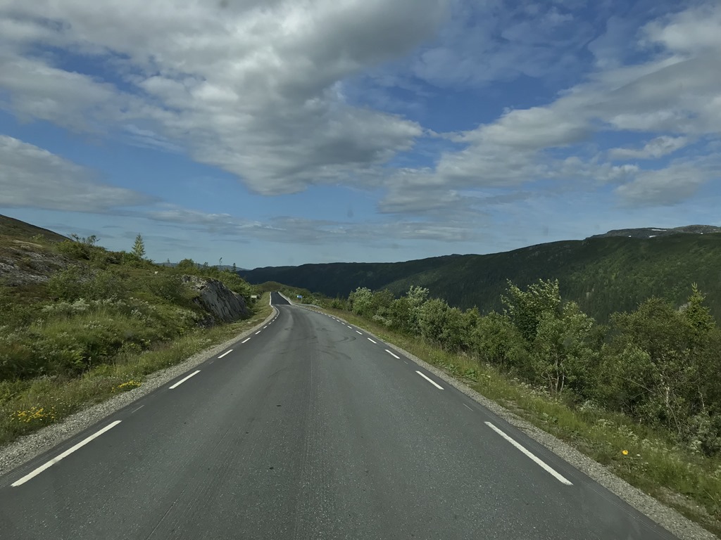 Vi kom ner på E6.an och följde den norrut en bit innan vi vek av på en mindre väg. Blev lite fel eftersom jag hade tänkt åka en lite längre väg så vi slapp färja. Den skulle vi nog valt för denna fjällövergången var väldigt liten och smal samt i väldigt dåligt skick. Men det var ju riktigt fina vyer.