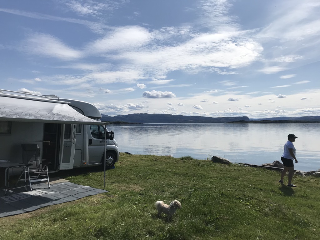 När vi väl kommit över med färjan så var det ju bara 500 meter till Kvisterö Fjordcamping och vi fick ännu en fin plats.