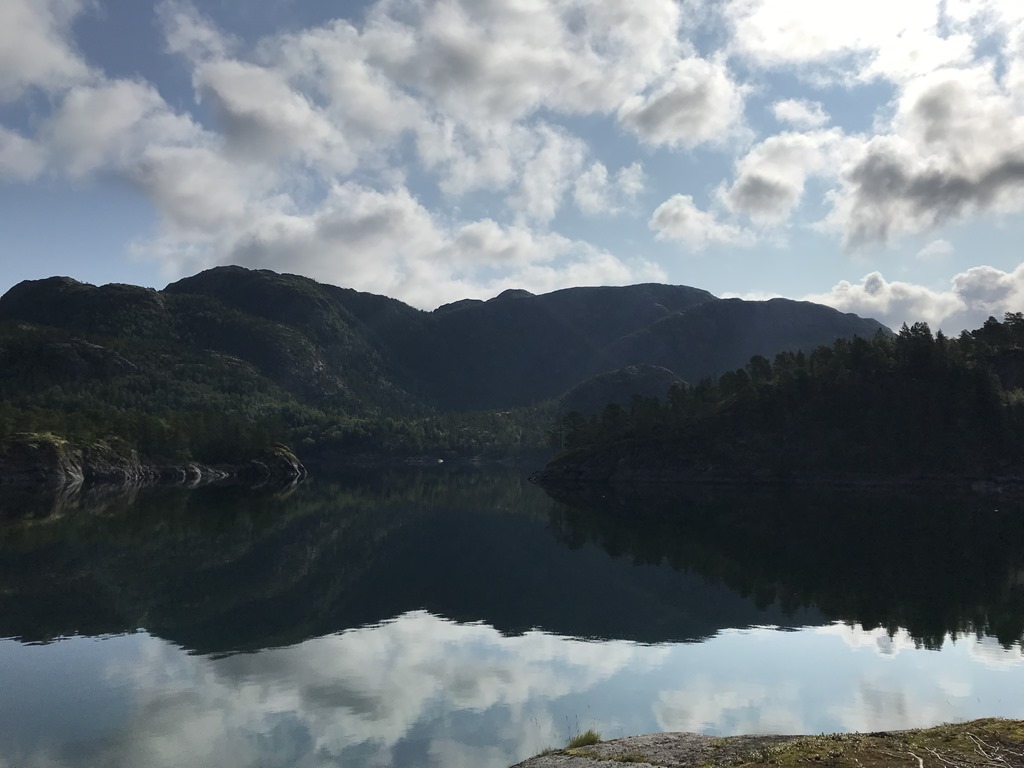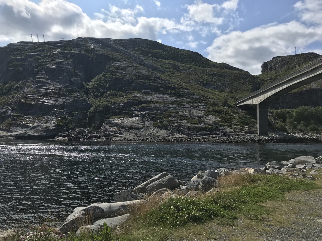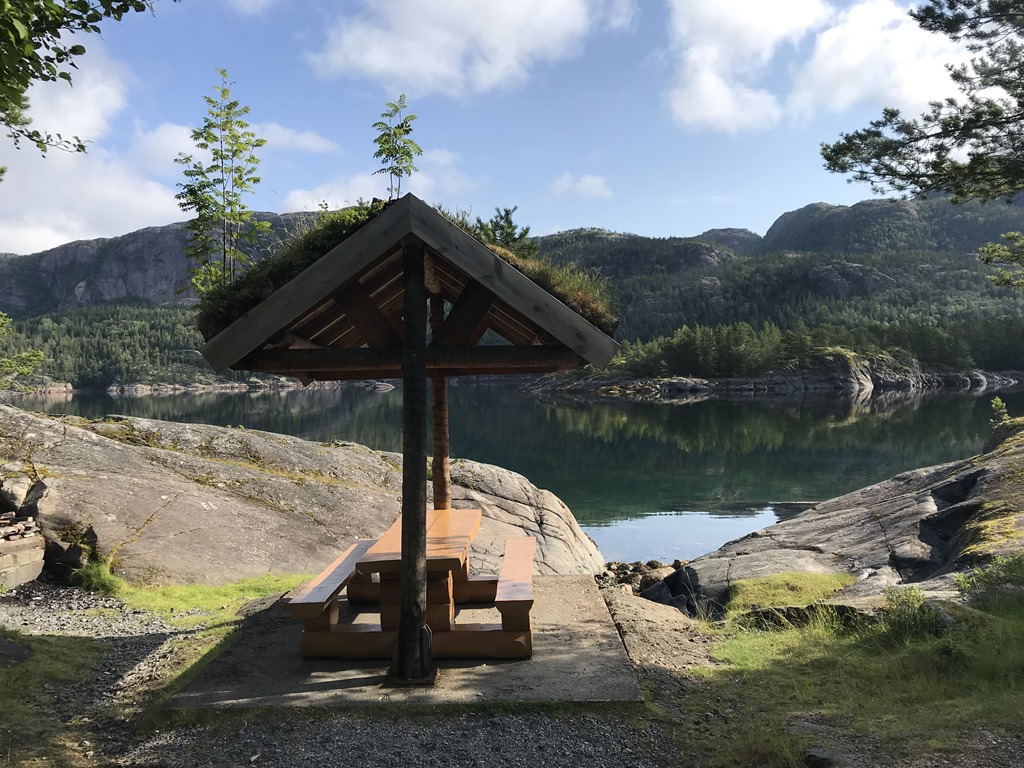 08:30 Färja från Hofles till Lund vilket tog en halvtimme under tiden åt vi frukost i husbilen. Sedan fortsatte vi en bit innan vi gjorde ett kort stopp för toabesök. Vilken himla fin rastplats vi hittade.