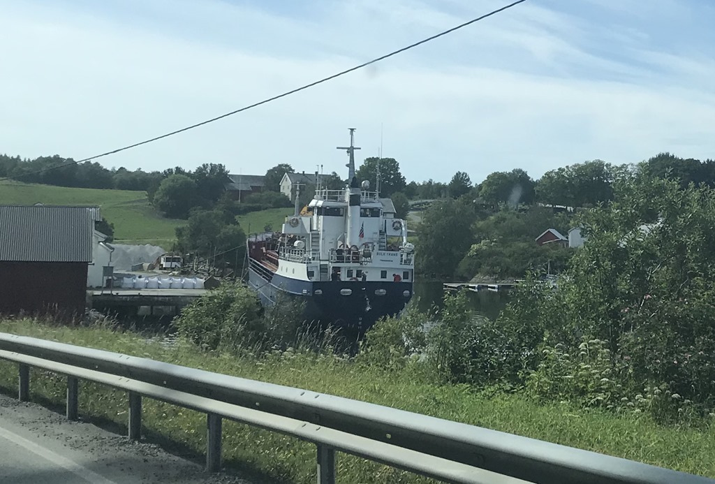 Vi fortsatte söderut på ganska fina vägar till Namsos där vi stannade för att handla på en stor matbutik som jag varit på flera gånger innan. Vi är ju ofta här och lastar sand och då har jag varit här och provianterat. Vi fortsatte sedan en bit söderut innan vi svängde av ut mot Osen. Är en lite mindre väg som håller på att uppgraderas så den var bitvis väldigt dålig och bitvis helt ny.